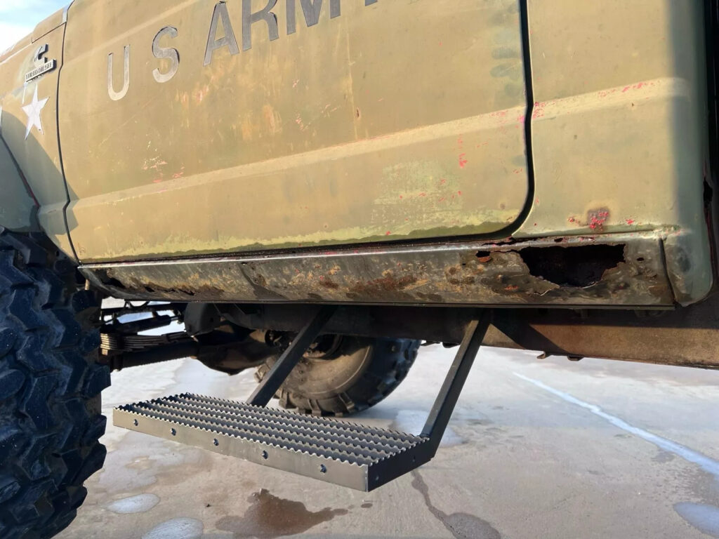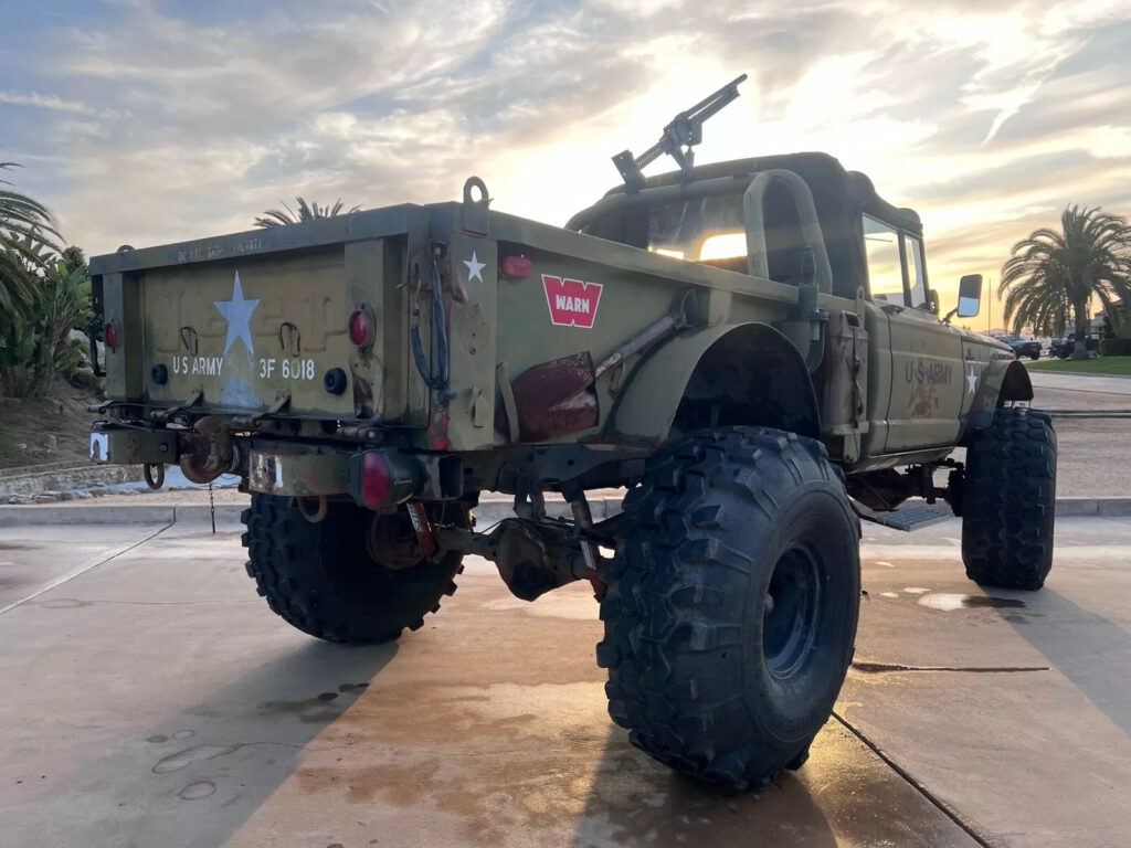 This is a 1967 retired military M715. The civilian version of this truck was the 1960’s Jeep Gladiator. This truck is an absolute beast and needs to be seen in person to fully appreciate it! It is a woodsman’s perfect truck! It is apocalypse ready! The truck has obviously gone through some alterations since its day as a military truck. Most prominently, its 3.8L ‘Tornado’ inline 6 cylinder gasoline engine [132 hp] was replaced with a late 1980’s/early 1990’s Cummins 5.9L inline 6 cylinder diesel engine [~200-250hp]; also, the standard issue military wheels were replaced with 44” super swampers on custom 15” rims. The Super swampers were bought brand new at a cost of over $4000 for the set and only have about 30 miles on them since being put on. The truck has been pretty much in storage since they were put on in early 2022 and the tires still have quite a bit of the rubber injection-mold ‘nipples’ remaining (see pictures) [Note: The original military wheels and tires will be included in this sale.] The stock axles have been replaced with axles that can handle the 44’s. However, what these axles are, or what they came out of escapes my memory. When this truck received its cummins engine, it also received the mated 5 speed manual transmission and transfer case. (This was an $10k+ cost just for the components and doesn’t include the fabrication time to get it to fit.) This truck could stand to have a beefier clutch installed to reduce/prevent slipping when trying to move these massive tires, but the current clutch does an adequate enough job if you are nice to it. This truck also has a new power steering box from Redhead Steering Gears with added hydraulic ram assist. You can literally turn these wheels with a single finger and it is an absolute delight. #butter The front axle has manual locking hubs made by ‘Selecteo’. A battery cutoff switch was installed in the cab as well as the battery was repositioned to the center console of the cab. The side mounted fuel cans and tools are included as well, along with a spare tire/wheel and a ‘hi-lift’ farm jack. I know, I know. What if I decide to take it out to the deep woods and I get stuck… then what? Well, it just so happens that In the front end of this beast is mounted a 12k Warn winch. You can recover yourself, or any of your friends that try to keep up with you but don’t quite make it. There are some issues with this truck and they are as follows: -The ring gear in the front-end needs to be replaced in order to match the rear ratio. The ring and pinion are included in the sale, but need to be installed. -The driver side rocker panel is rusted pretty badly, but we have a brand new one that will be included with the sale. -The fuel gauge is