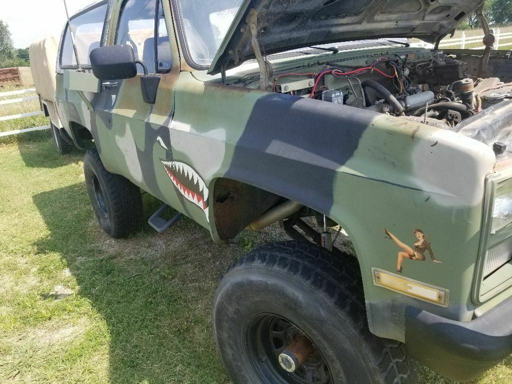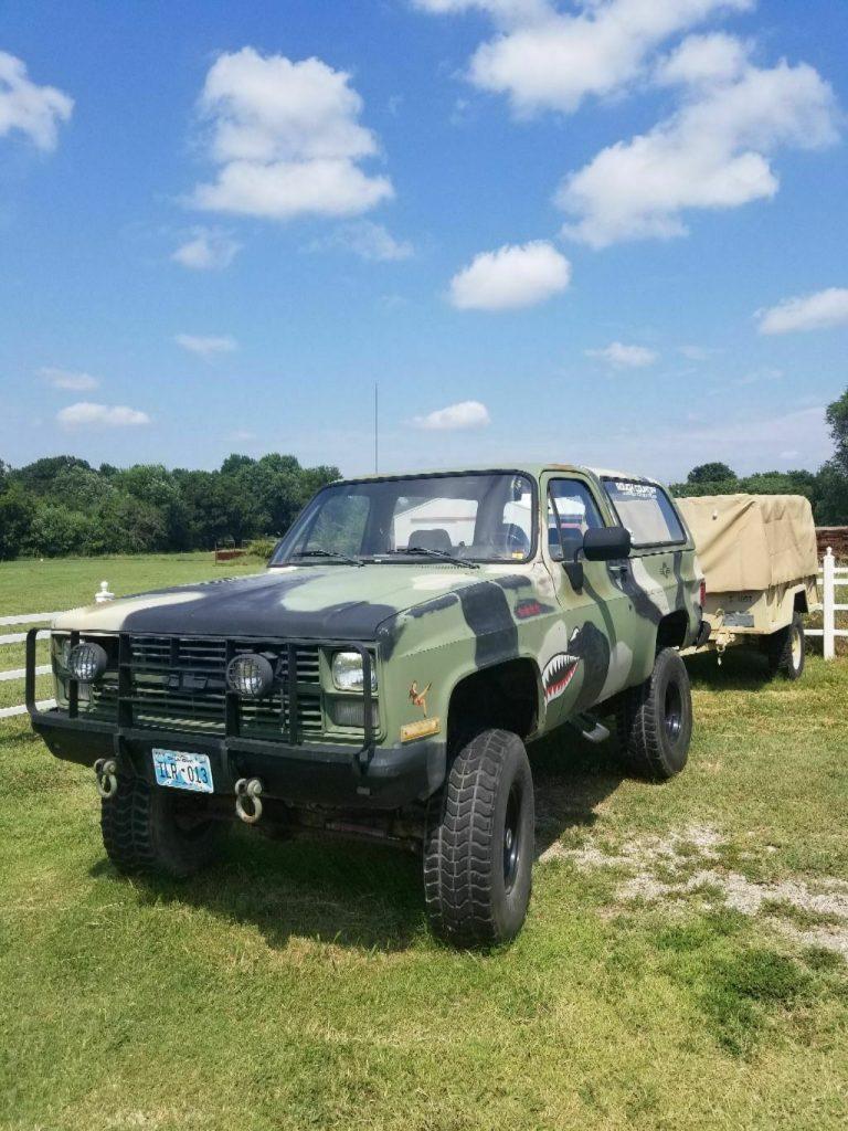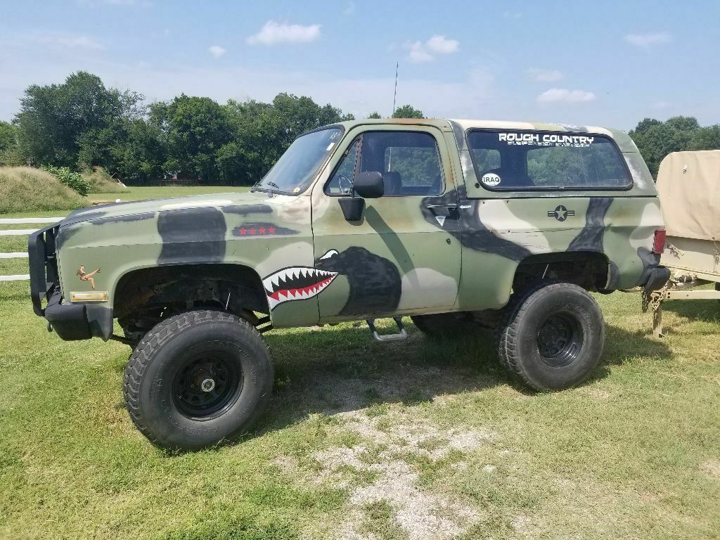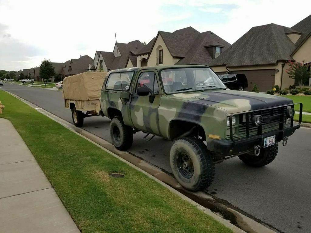 1986 M1009 CUCV Chevy Chevrolet K5 Blazer Ive had this truck and trailer over 10 years and have worked the bugs out of it. I got it from the army with 48k miles, has 53k miles on it now. Has the 6.2 diesel with a 6.5 turbo on top, electric fuel pump, turbo 400(rebuilt) transfer case has new seals, converted to 12 volt, 2 new batteries, new glow plugs, block heater, new hi-torque mini-starter, front & rear differentials have 3.73 gears (rearend is a posi) 6″ rough country lift kit with new springs, shocks & steering stabilizer, new rear driveshaft, new brakes, new 3″ exhaust from turbo out, 37″ Goodyear wrangler MTs (humvee tires) on steel wheels, inside rhino lined, jvc stereo, 5 speakers, console from suburban, boost pyrometer & oil pressure gauges. Cool patina with fighter plane stickers. Could be a daily driver. Cycle the glow plugs and she fires right up!