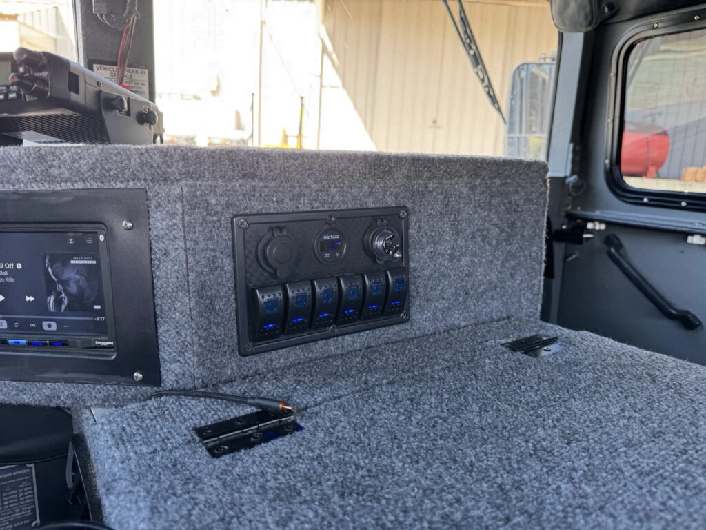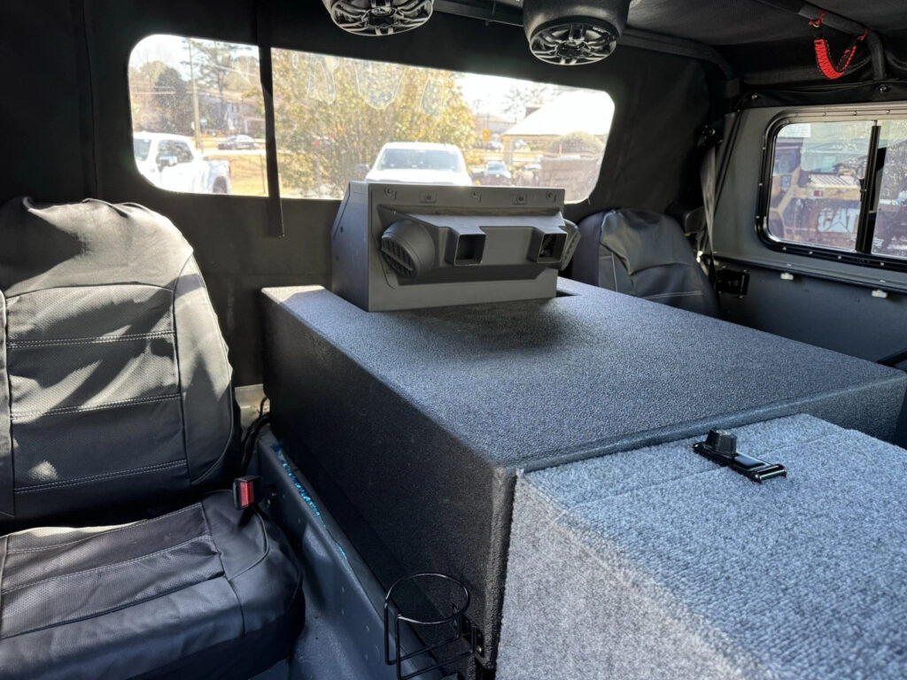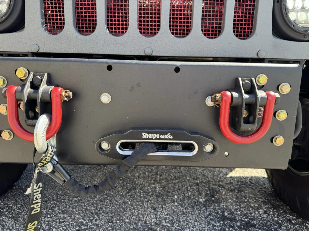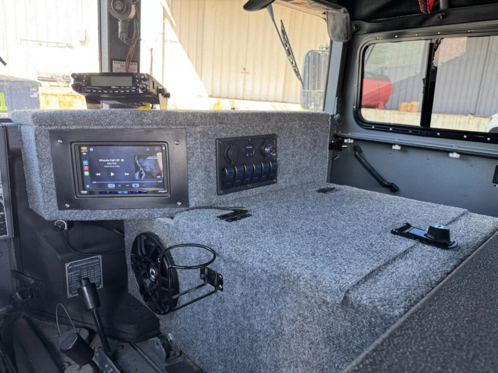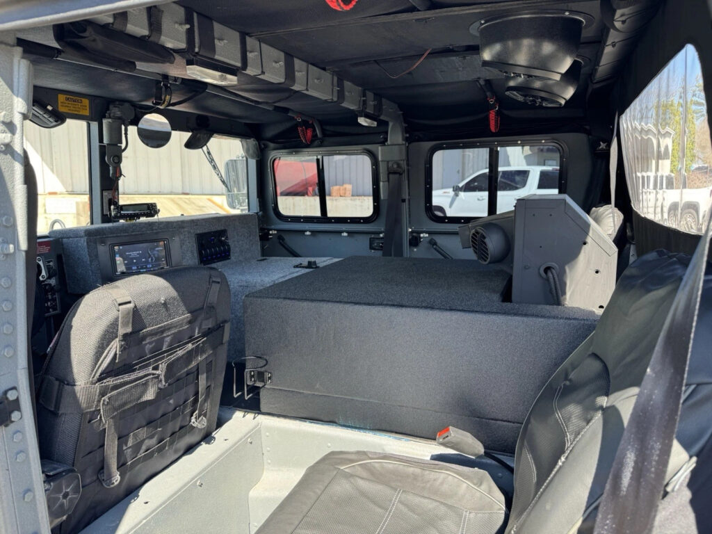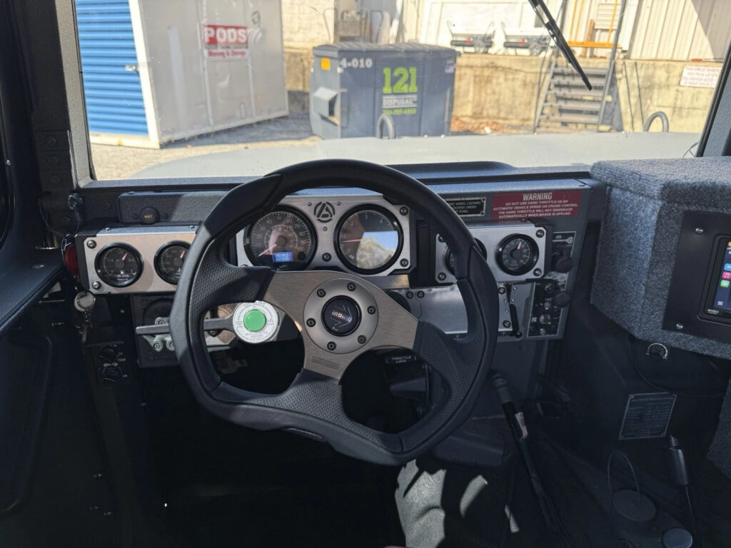 6.5 liter V-8 NA with 4 speed transmission. Air conditioner by Red Dot. New top and rear curtain by Blue Ox. New doors by CobraTek. 15,000 lb, 24 volt winch by Sherpa. Frame extensions and winch cover plate by Black Dog Customs. New oil and transmission cooler. New HD towing receiver by Black Dog Customs. New wheels by Black Rhino with 37×12.5×17 tires. New reverse lights. New Dash by American Machine Innovations. New Gauges with tachometer by SpeedHut. Custom built center console with Jensen W710W (wireless apple car play) with reverse camera (activated by switch). The large black box in the back houses 4 DS18 10โ woofers (yes its loud). Dedicated 12 volt system via step down converter. Lots of blood sweat and tears went into this one. Yes there are cheaper humvees on the market but not with this amount of work put into it. Just google a few of the parts I listed and you will understand. Please message me with any questions. This vehicle is listed on multiple platforms. If it sells somewhere other than eBay, I will delete the listing.