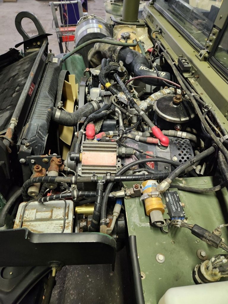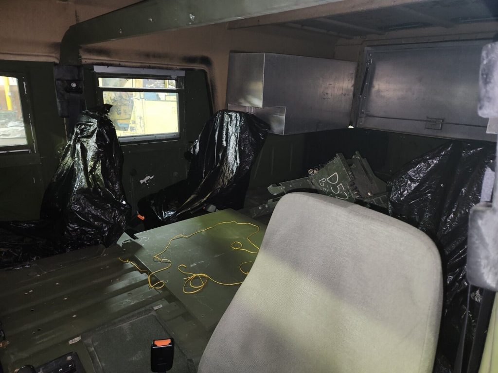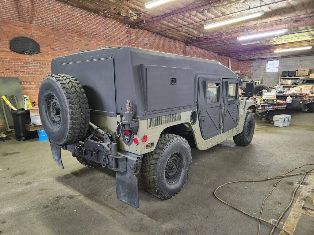 This is a M1152A1 military hmmwv that has been converted to 4 doors with a military helmet fiberglass hard top and x doors with a rhino spare tire carrier. It comes with a radio mount and antenna and all LED Lights. This is 6.5 turbo engine truck with 4 speed 4l80e transmission. This truck will run 65-70 mph with factory AC and heat.