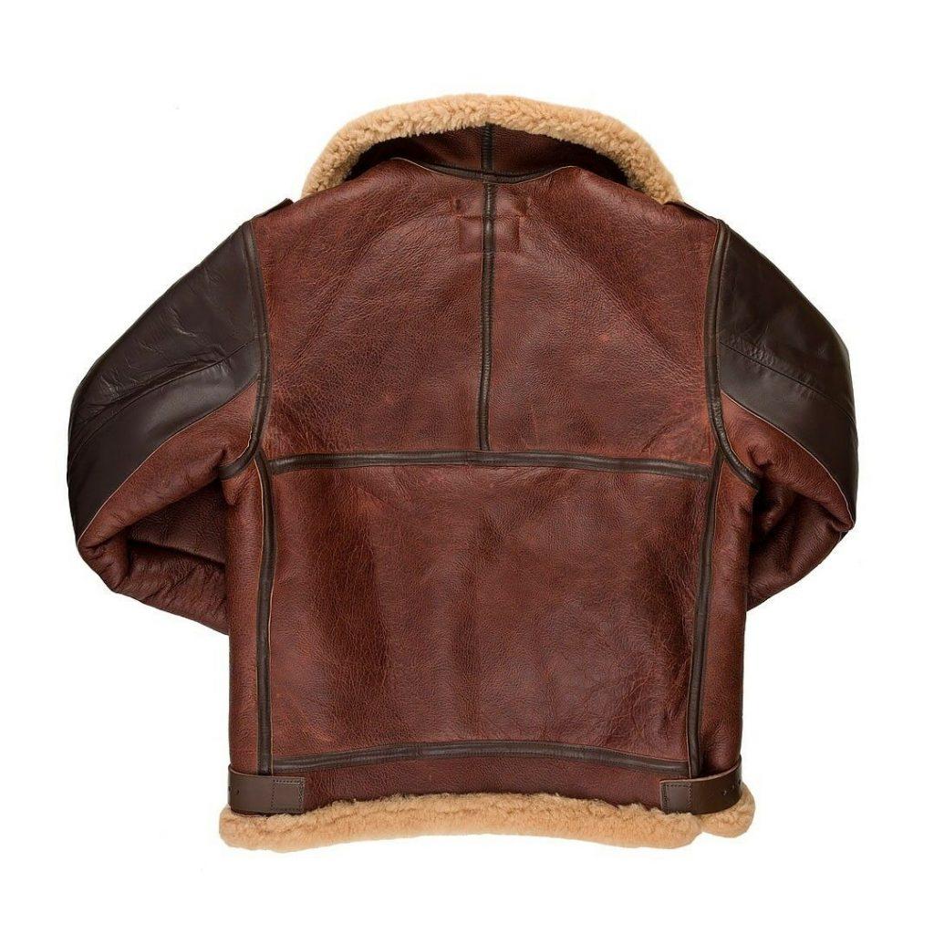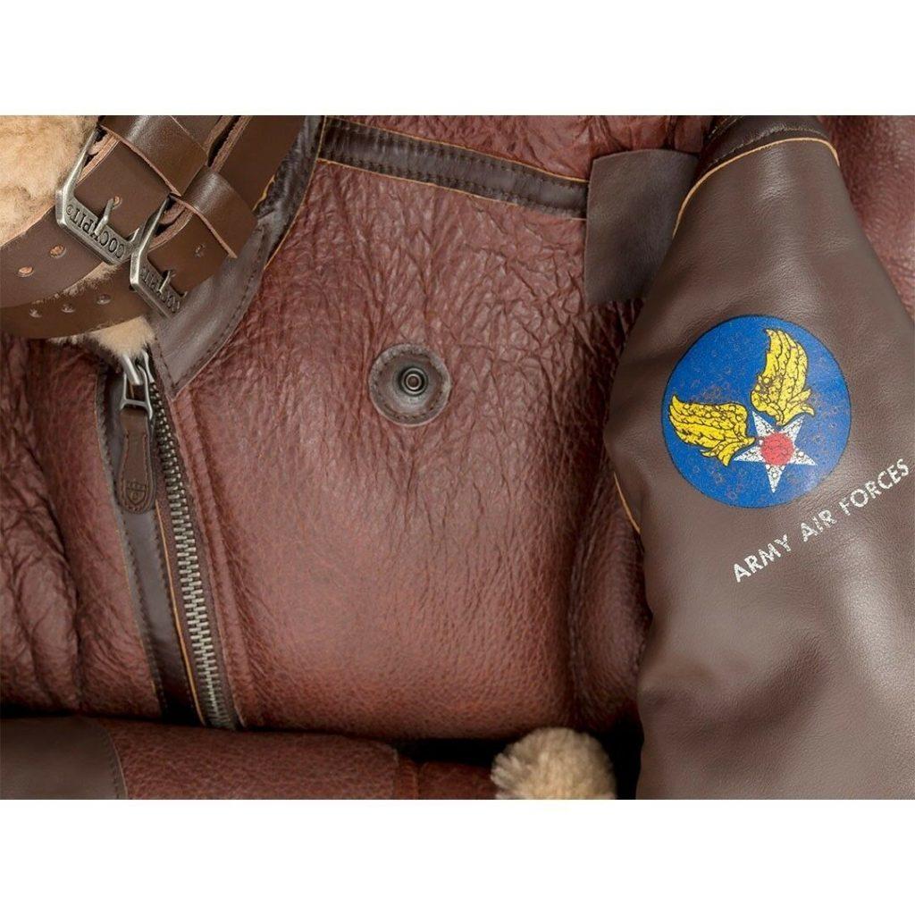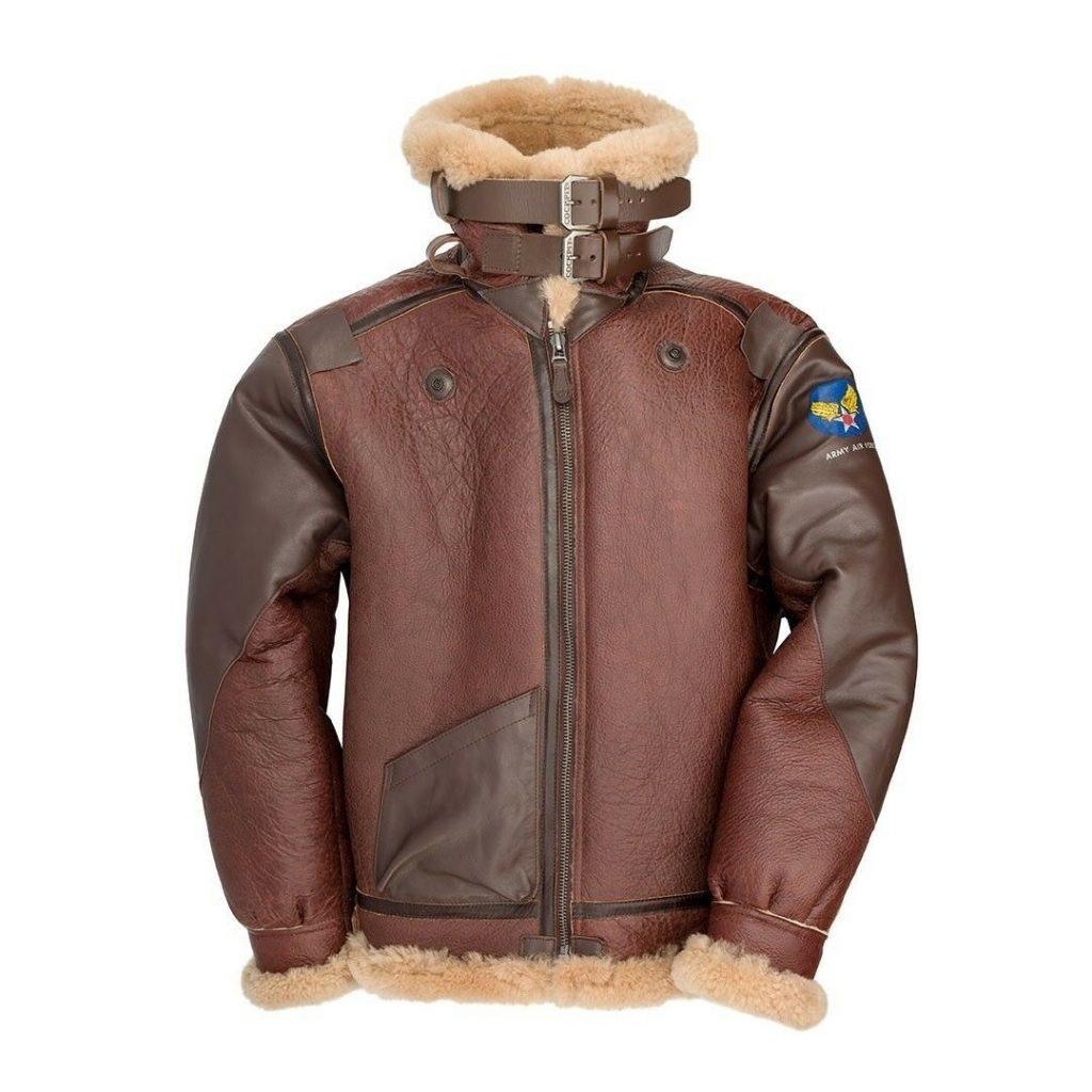 The ultimate collector’s B-3 shearling bomber jacket, patterned after the early 1941 issue russet colored jacket. The shearling pelts are specially hand selected and matched for authentic vintage coloring; there may be shading on the color just as in the original. Vintage labeling, heavy latigo leather belting straps and other original features make this a classic must have. Fits and looks like it just came out of the factory in 1941.