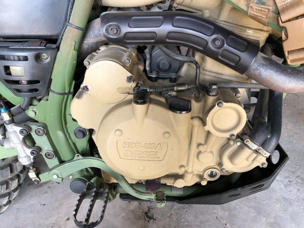Kawasaki, KLR, HDT, Diesel, M1030m1, 212 Miles I was fortunate to purchase this from the Sheriffs department who had purchased directly from the Military. Bike runs good and has no problems. Hate to part with it but I realize this belongs in the hands of someone who will appreciate it and use it more often than I can. Most parts are interchangeable with the KLR. The engine is made by HDT and has a simple mechanical fuel injection system that is very durable. Tank vest included.