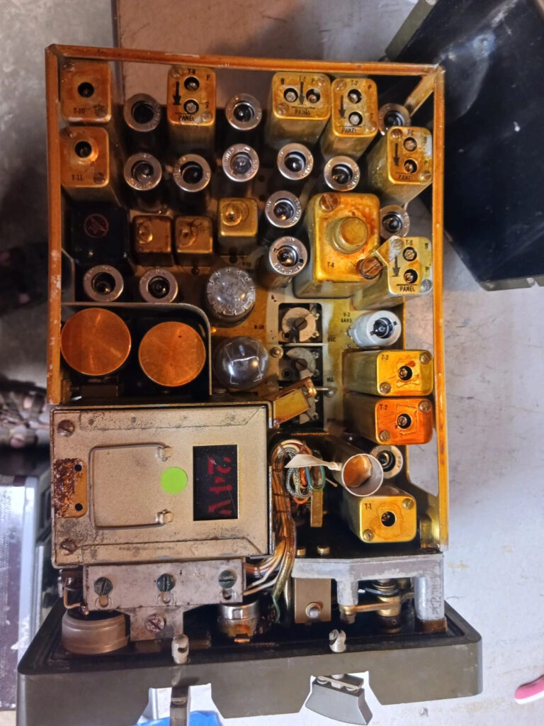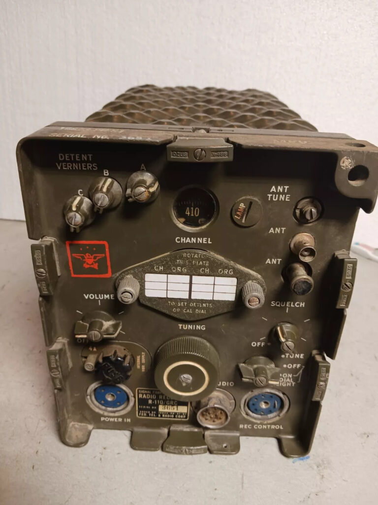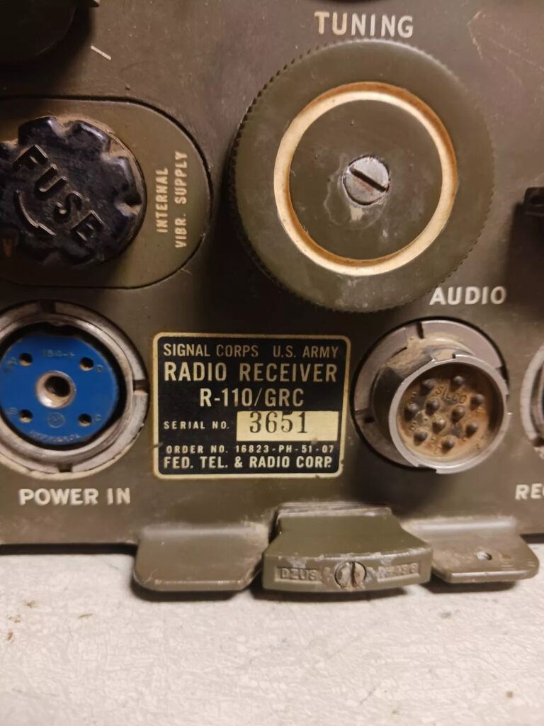 This is a Korean War era RT-110/GRC radio receiver. It comes from the estate of a long time collector/horder of HAM and Military radios. The shear quantity of the material that this guy had was staggering, imagine four 16 foot cargo trailers full! I’ll be listing all sorts of high quality radios and components in the coming weeks. If you’re looking for something in particular, let me know. Please see the photos.