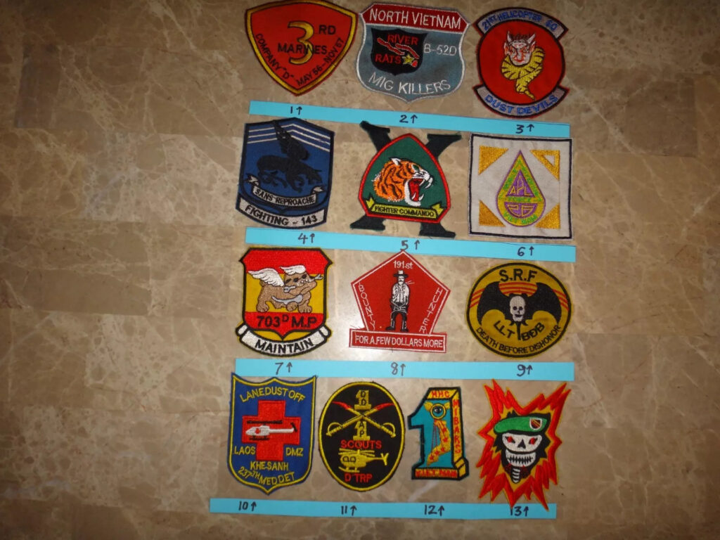 Up for your collection is a lot of 13 used, vintage Vietnam war machine embroidered patches from various US military units.