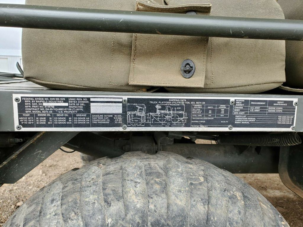 M274 A5 Mule 1/2 Ton he M274, known as the Mechanical Mule, was developed in the 1950s as a light weight cargo carrier to replace both the 1/4-ton jeep and 3/4-ton trucks in infantry and airborne infantry battalions. The M274 was known as the “Truck, Platform, Utility 1/2 Ton, 4×4” or the “Carrier, Light Weapons, Infantry, 1/2 ton, 4×4”.The M274 family could be fitted for many infantry tasks including transport of personnel or cargo (slowly–keeping up with foot soldiers), for stringing wire with a cable reel, for carrying patients on stretchers, and as a weapons platform for a recoilless rifle or TOW anti-tank missile. Each wheel had shackles for lifting by helicopter or parachute airdrop. The seat and the foot basket can be detached and stored underneath the platform which can then be rigged as a steerable trailer. The steering column could be set in multiple positions so the driver could operate the vehicle from almost any position, including crouching down. The M274 vehicles were phased out by 1980, with the intended replacement being the HMMWV. However, the need for a small, versatile vehicle was not fully met by the HMMWV and in the 2000s the U.S. Military adopted the M-Gator as a modern version of the M-274 Mechanical Mule.