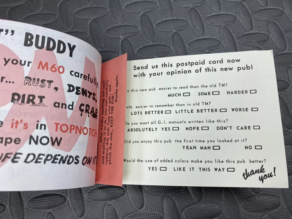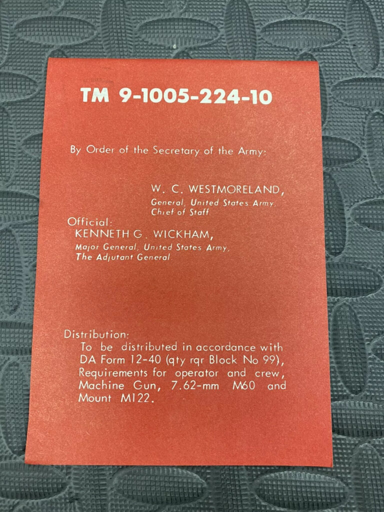 TM 9-1005-224-10 October 1970 M60 Operator’s Manual. Unissued condition.