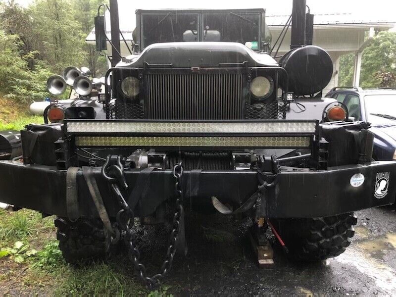 Military truck chop and bobbed stored in a barn for years What I can tell from first everything voltage gauges tack and speed and odometer are working. The tires look good no weather cracks. Window on passenger door has crack but works fine. The truck has a working PTO with 300 ft 3/4 cable winch. Hi and low range a manual transmission. Only 9500 + miles on It. The air horns work and very loud. Light bars both work. Fuel cans all have had oil in them to stop rusting. Diesel 240 Hp 855 Ci motor starts every time. Also we have video of the inside and starting the motor if you wish to contact us. Motor has 8โ exhaust and snorkel permanently attached. Dual 50 Gallon side tanks with selector switch and gauge. All the oils and fluids are full and has never used any other than normal oil changes and coolant. This has been garaged for over 5 years. We started it and would run it for 30 minutes or more at least twice a year or more. The auction is for the truck only, no trailer. Shipping and pickup will need to be arranged by the buyer after sale. We will store the truck free for 30 days after the end of the auction as long as it has been paid in full with in 7 days other wise it will re list