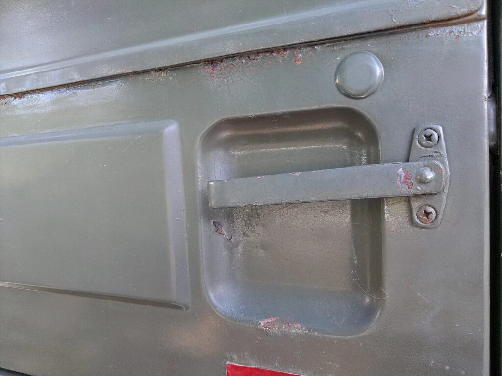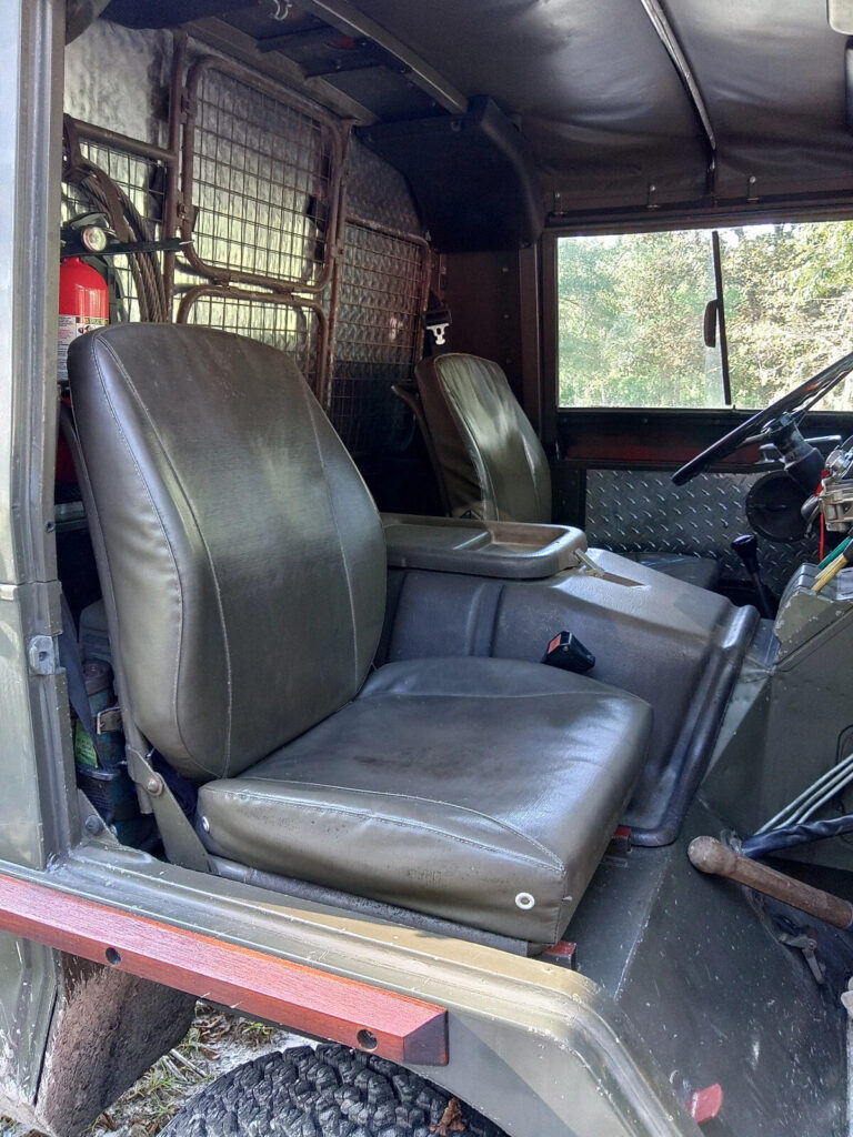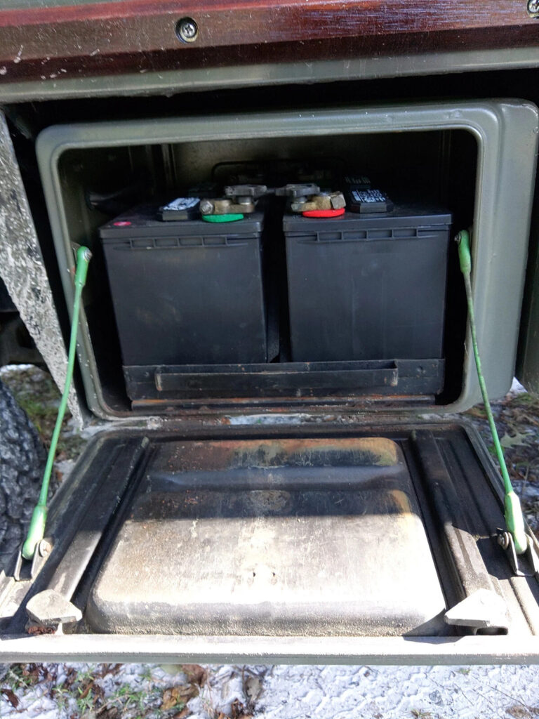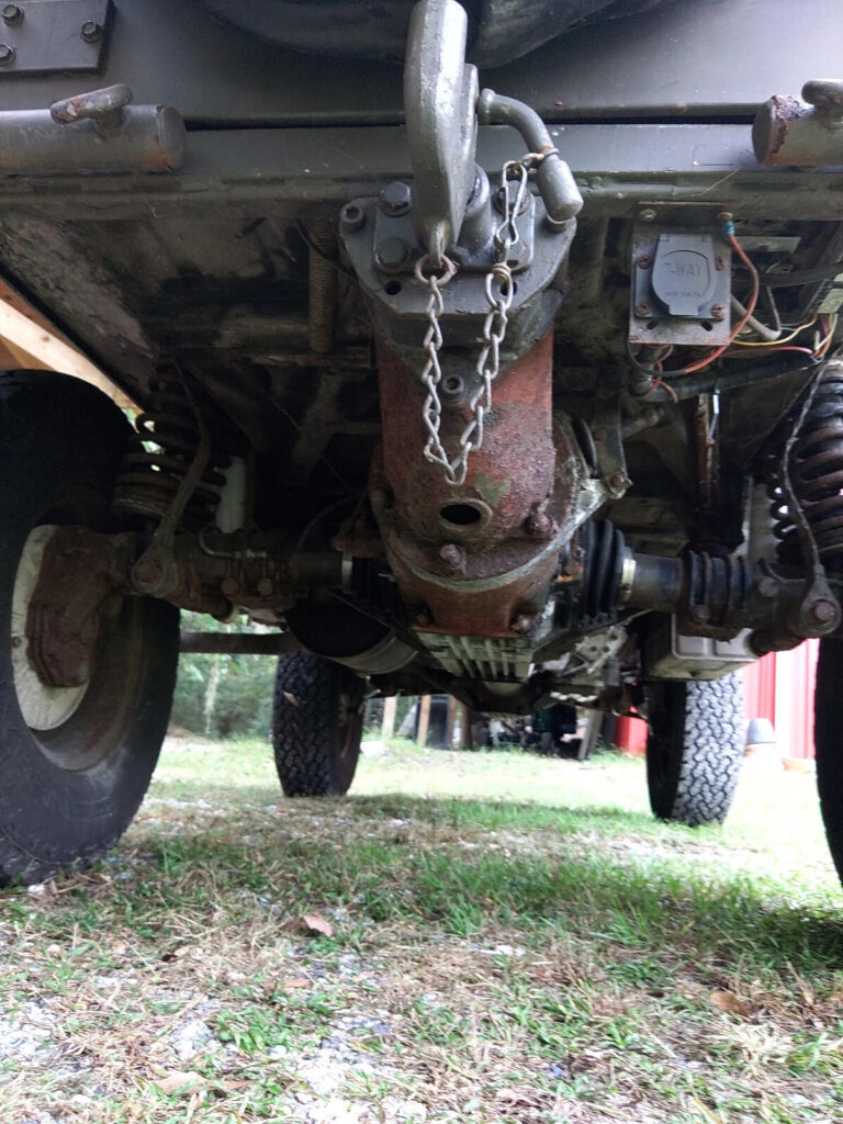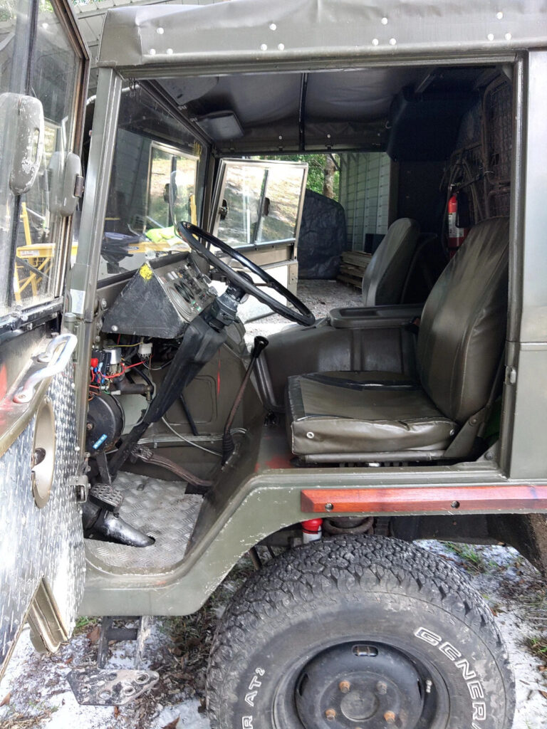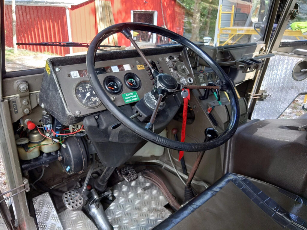 Vehicle is original with good tops, 24 Volt electric and Ignition conversion. Has 12 Volt trailer converter with standard RV plug. Tires are good with 75 % tread. Drivers side door has some surface rust on exterior and hand throttle does not work. Drivers seat cushion is worn and troop seat cushions are missing. The vehicle is maintained regularly with parts from Swiss Army Vehicles and driven on average every 3 weeks. Has a clean North Carolina title. Comes with Owners manual, Repair and Parts manual and some original tool kit items.