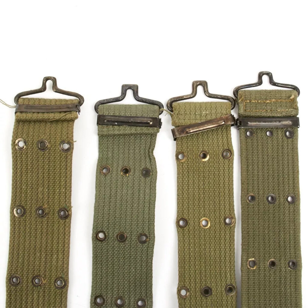 Original Item: Adjustable up to 42” in length, these are genuine USA made vintage pistols belts manufactured the 1950s and early 1960s that were supplied to Greece before the Vietnam War. Each is nearly identical to the USGI issue M56 pistol belt and are constructed of a horizontal dense weave cotton construction with brass/steel grommets and brass/steel buckles. As these were not issued to US troops, there will not be any NSN or contract number markings. All show some use but each is offered in very good to excellent condition.