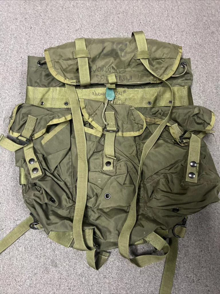 Medium Alice pack in great shape. No rips all straps in good shape. No rust on buckles. OD green, no dry rotting on pack. Might have name or numbers and some wear.