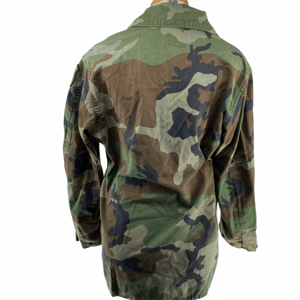 US Army Jacket Size Medium Camo Camouflage Military Coat Patches Green