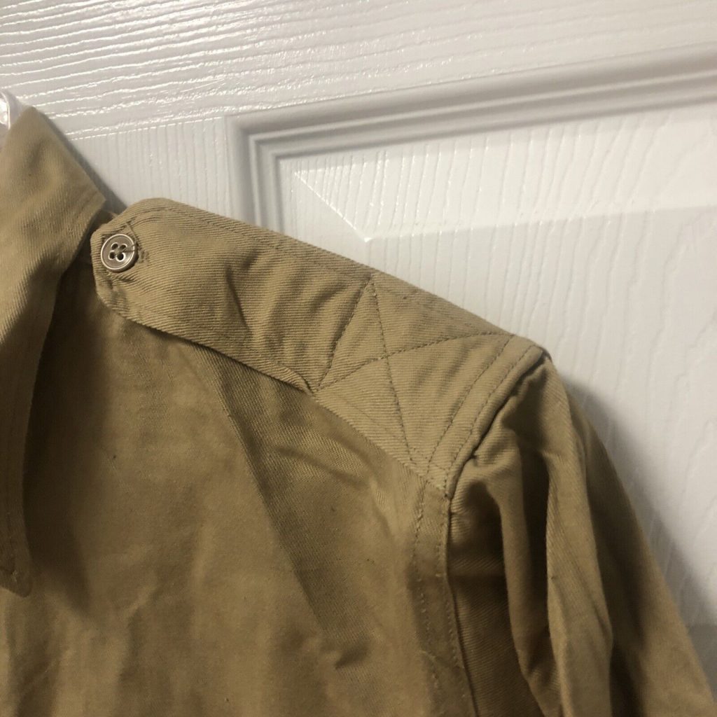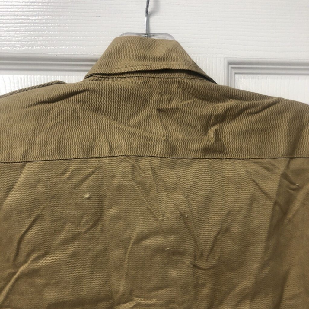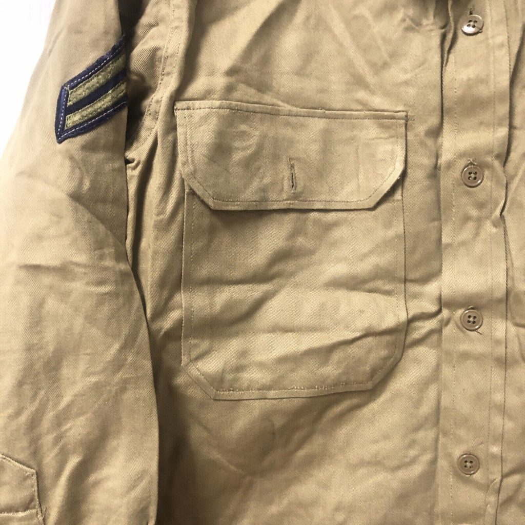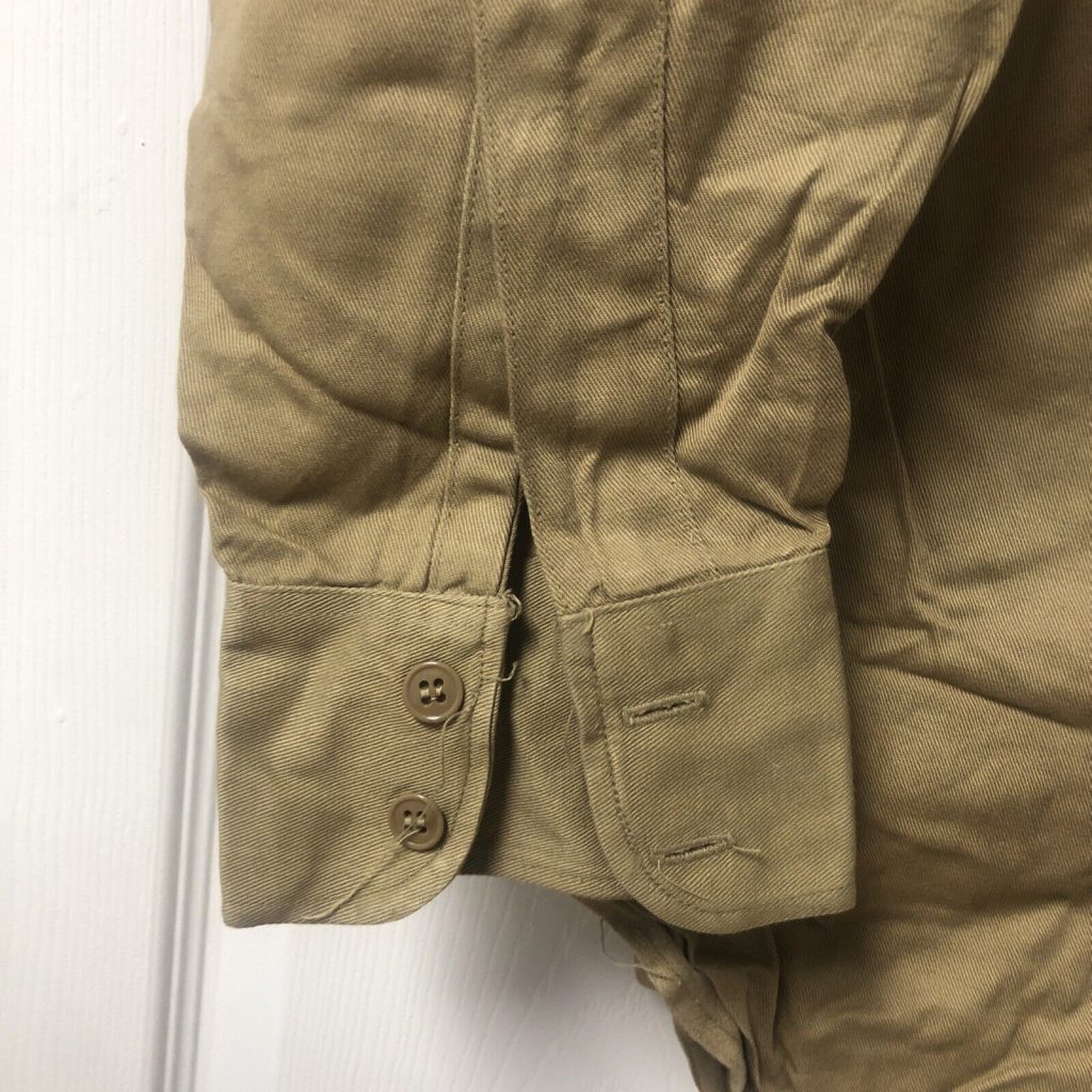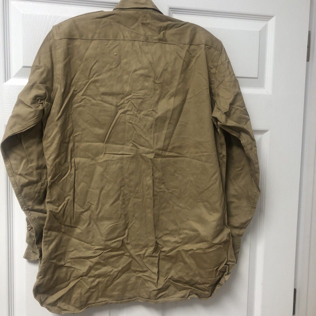 US WW2 Army khaki dress shirt Sergeant patches. This shirt was donated to our store as part of a large group of military clothing. Unfortunately all items were stuffed in a large bag and are quite wrinkled. The shirt does not have any rips or missing buttons . See photos. Size is 15 x 32.