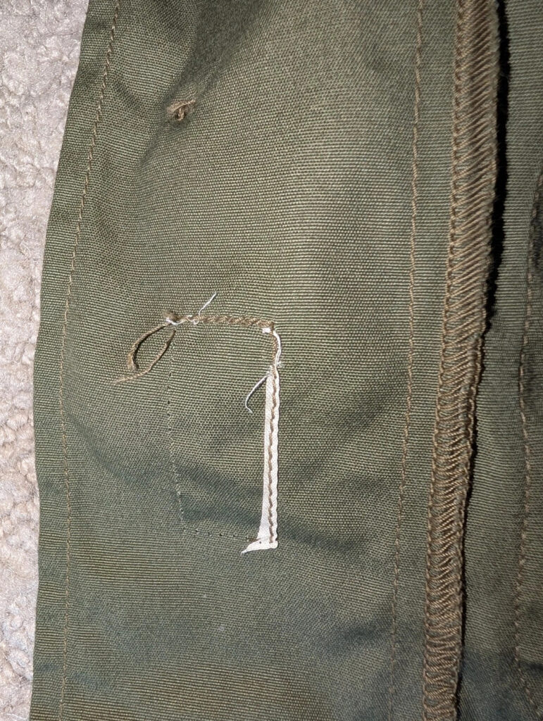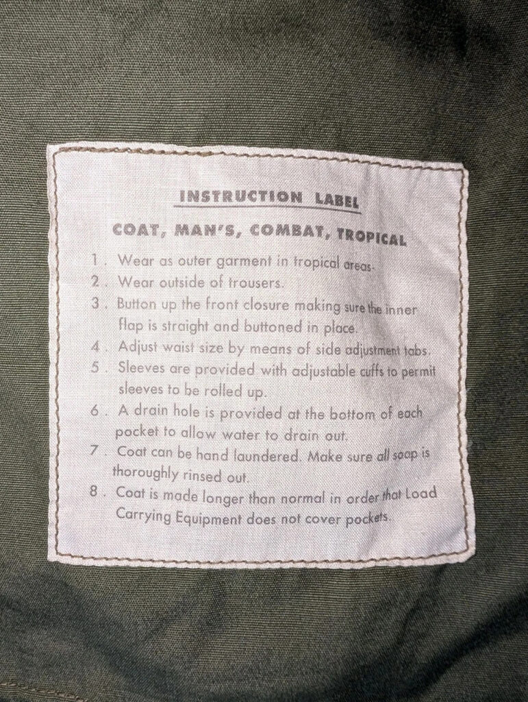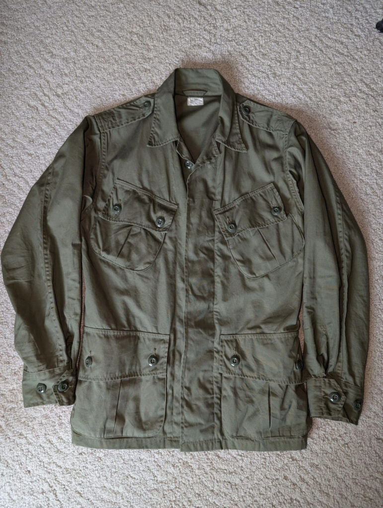 Very nice condition first pattern jungle fatigue jacket apparently made by Buzz Rickson. it looks like it was never used however one of the tags looks to have been removed. I’m not sure what the reason for this was but I’ve seen other examples with similar removals done. In any case this jacket in particular would look amazing in ones collection and is definitely very hard to come by in this condition. Please ask any questions before buying and thanks for looking.