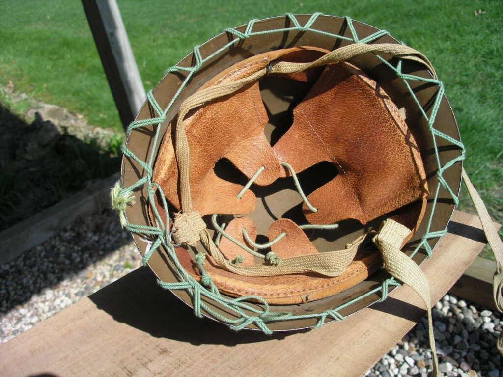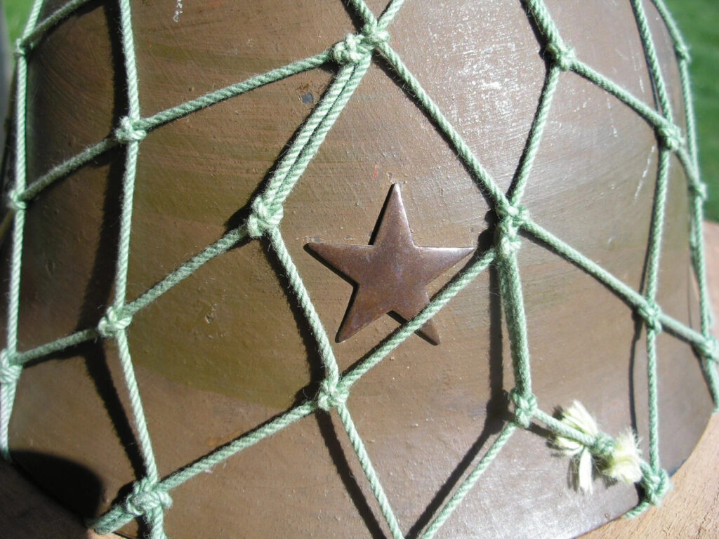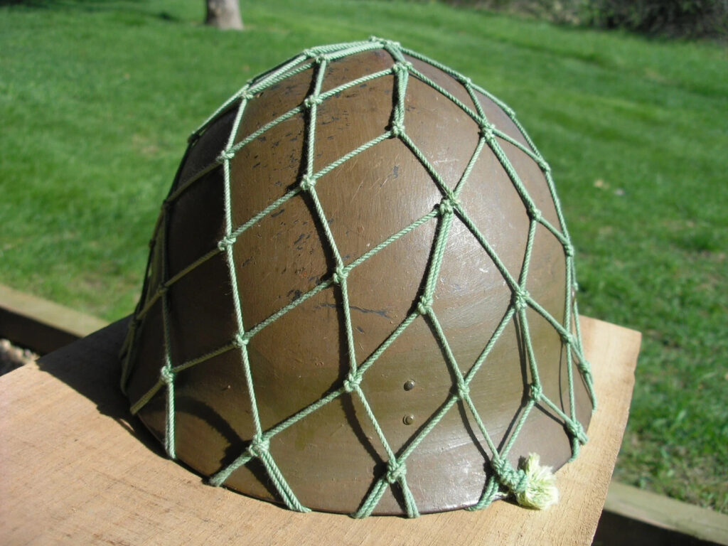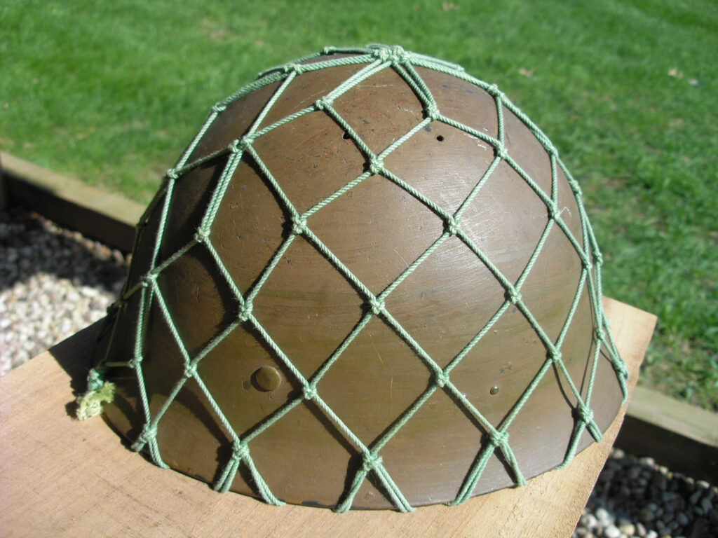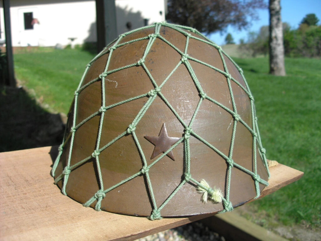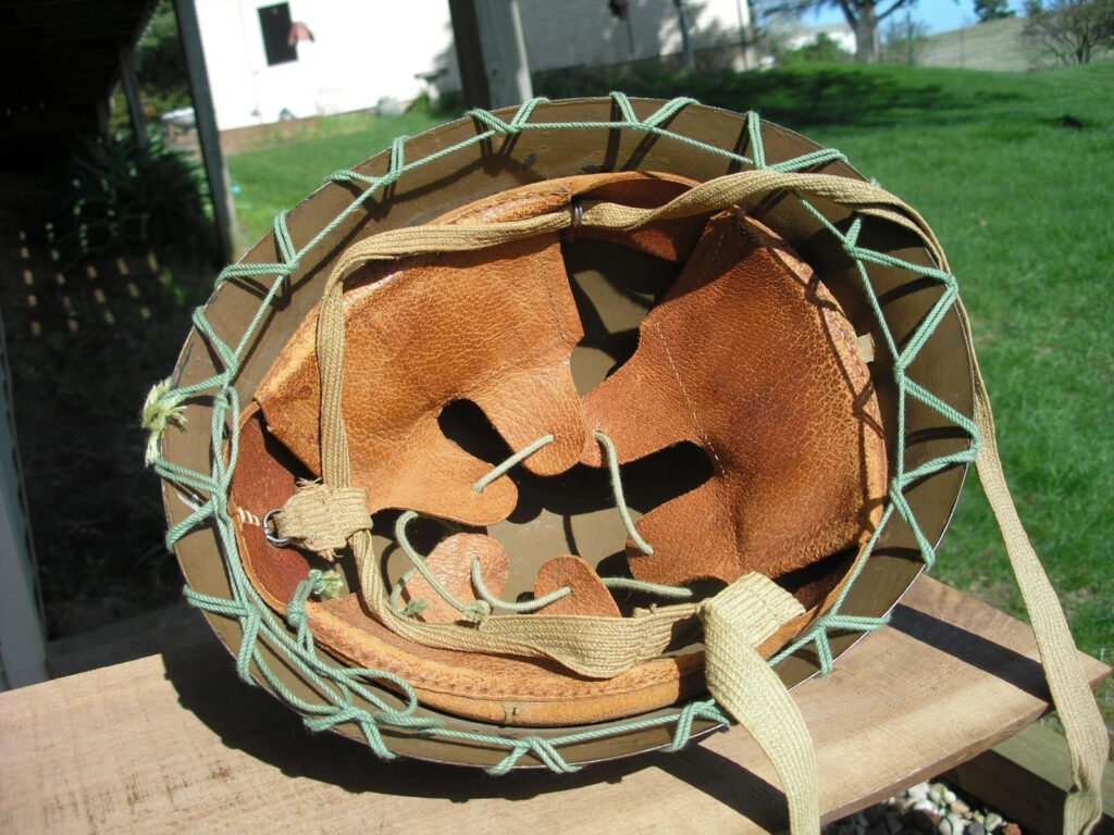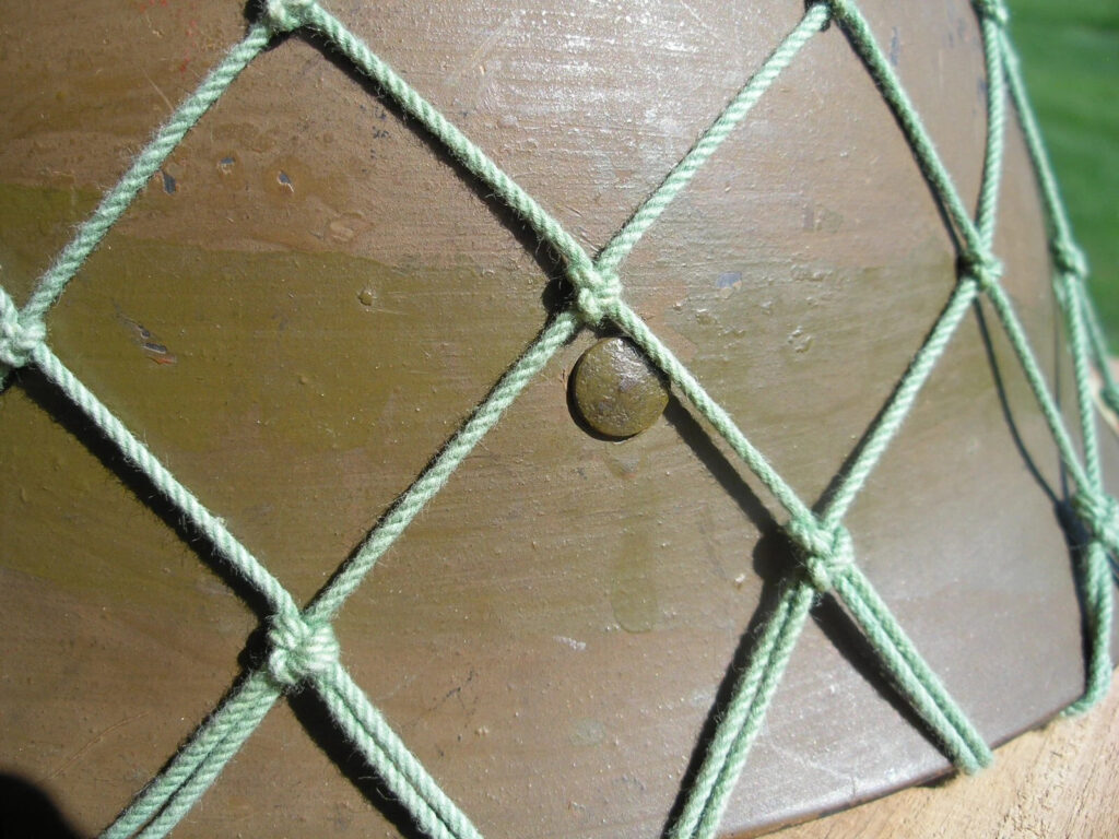 I did check the entire helmet over with my UV black light, nothing whatsoever glows under a UV black light, same for the net, no-glow, so no modern fabric components. Just a quick word on nets. Years back, I acquired this helmet with the Japan Army Navy camouflage net already on it. This is one of the nets with reinforced double rope at the edge. You can find these nets for sale on many militaria sites as original, but some collectors are saying these are very good copies some say even made with original material in the 1970’s – 1980’s in Japan by Nakata Shoten. The net displays on this helmet extremely well so I have left it in-place. Helmet would be a very good addition to any Pacific War / USMC Marines WW2 Collection.
