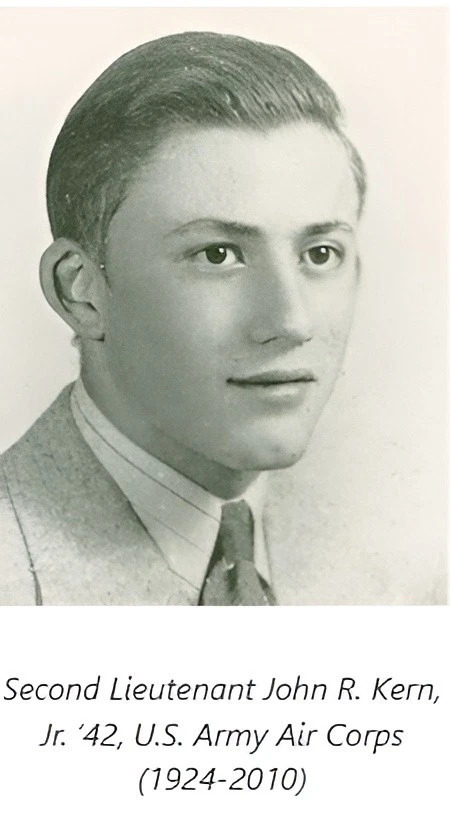 “During World War II, General Kern enlisted in the Army Air Corps, and after a period of training, received his commission as a second lieutenant in February 1944. In May 1944 he was assigned to the 388th Bombardment Group in the European Theater of Operations as a navigator on a B-17 aircraft. During the succeeding months, he flew on 27 combat missions against targets in Europe. On his 27th mission, the aircraft on which General Kern was navigator was shot down and he spent the remainder of World War II as a prisoner of war at Stalag Luft I near Barth, Germany.